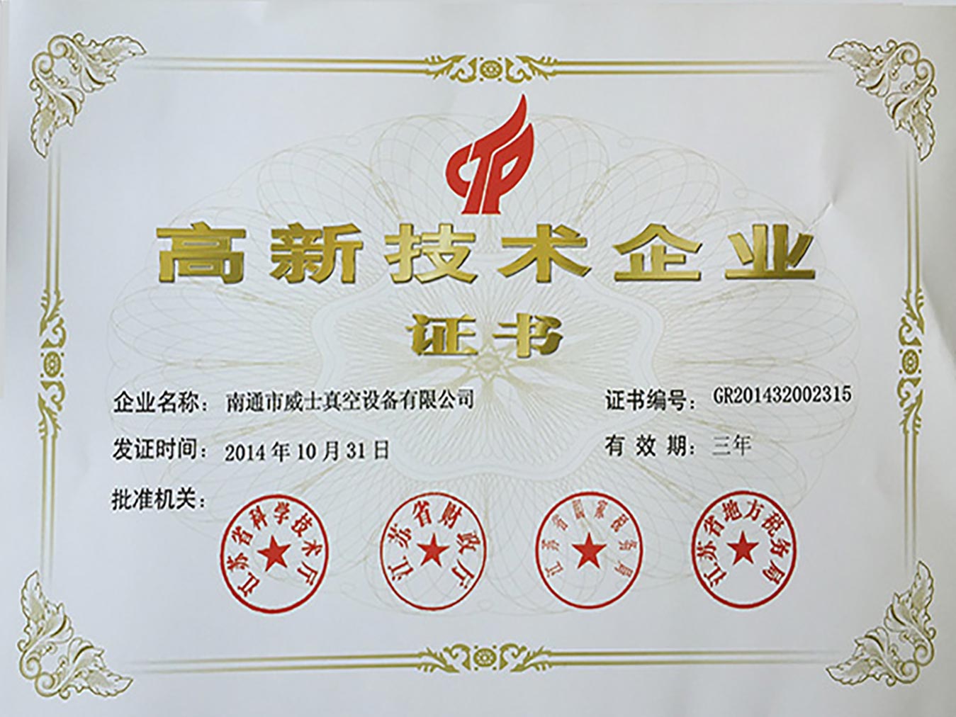熱烈祝賀我公司榮獲國家高新技術(shù)企業(yè)證書